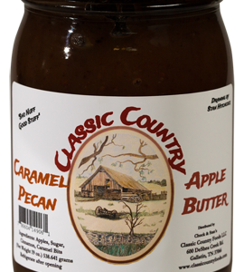 This is the dressed up taste of fall. Delicious apple butter is given a gourmet addition with kettle stirred caramel and toasted pecans. Cooking down the apple mixture until it is smooth, thick and sticky makes fruit butter. This takes time but the process greatly enhances the flavor of the apples. The caramel and pecans definitely “kick” this up a notch! Classic Country Foods Caramel Pecan Apple Butter is a customer favorite. It is tasty as a spread or as an addition to dessert recipes (see Blog).